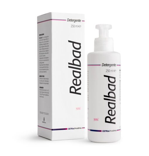 Realbad è un detergente a pH acido dispersibile in acqua con un alto potere emolliente, idratante e lenitivo per l’igiene e la detersione del corpo. Non provoca schiuma e rispetta il film idrolipidico senza alterare il pH cutaneo. Coadiuvante nel trattamento di cuti e mucose secche e desquamate.